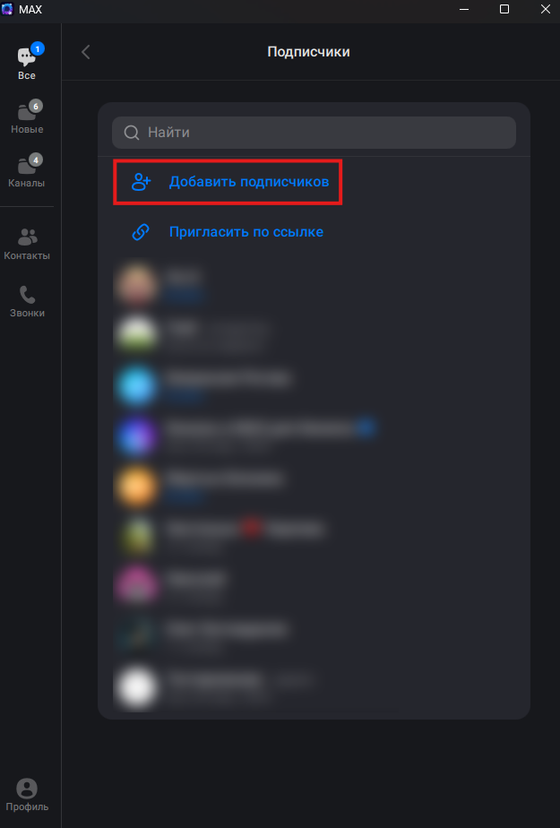 2. Выберите пункт «Добавить подписчиков».