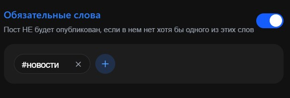 Пример использования: Вы хотите переносить в Max только самые важные новости. Создайте специальный хештег (например, #MaxNews) и добавьте его в список обязательных слов. Теперь сервис будет автоматически публиковать только те посты, где есть этот хештег, игнорируя всё остальное.