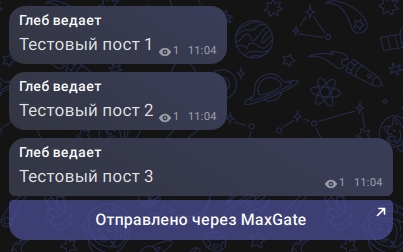 6. Готово! Канал успешно подключён к сервису MaxGate, и все новые публикации из Telegram будут автоматически и мгновенно дублироваться в мессенджере Max.